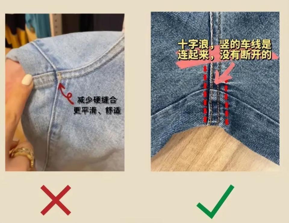 比如说雷同是一条牛仔裤,有的裤子前少了缝合,可能你以为会更平滑舒畅,其实否则,正确的应该是选拔十字浪的缝线,塑形的车线是连起来的,莫得断开,这么的裤子神气穿起来更舒畅。