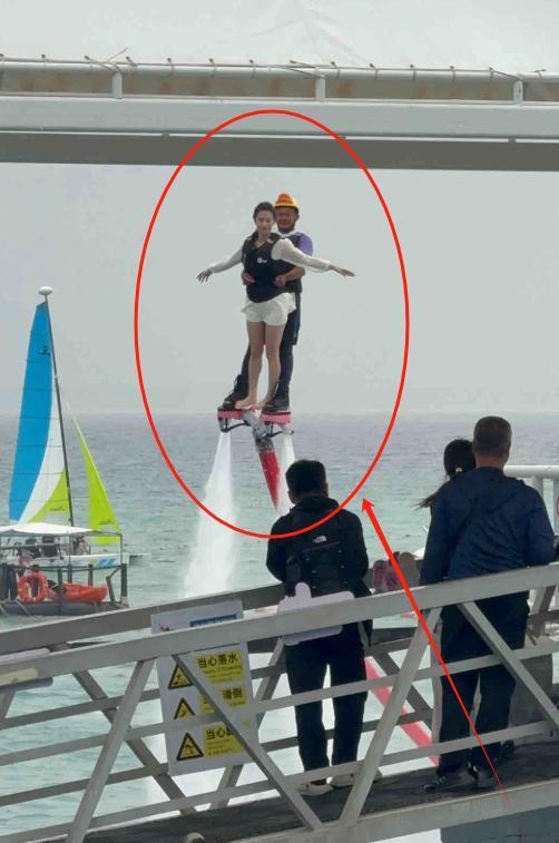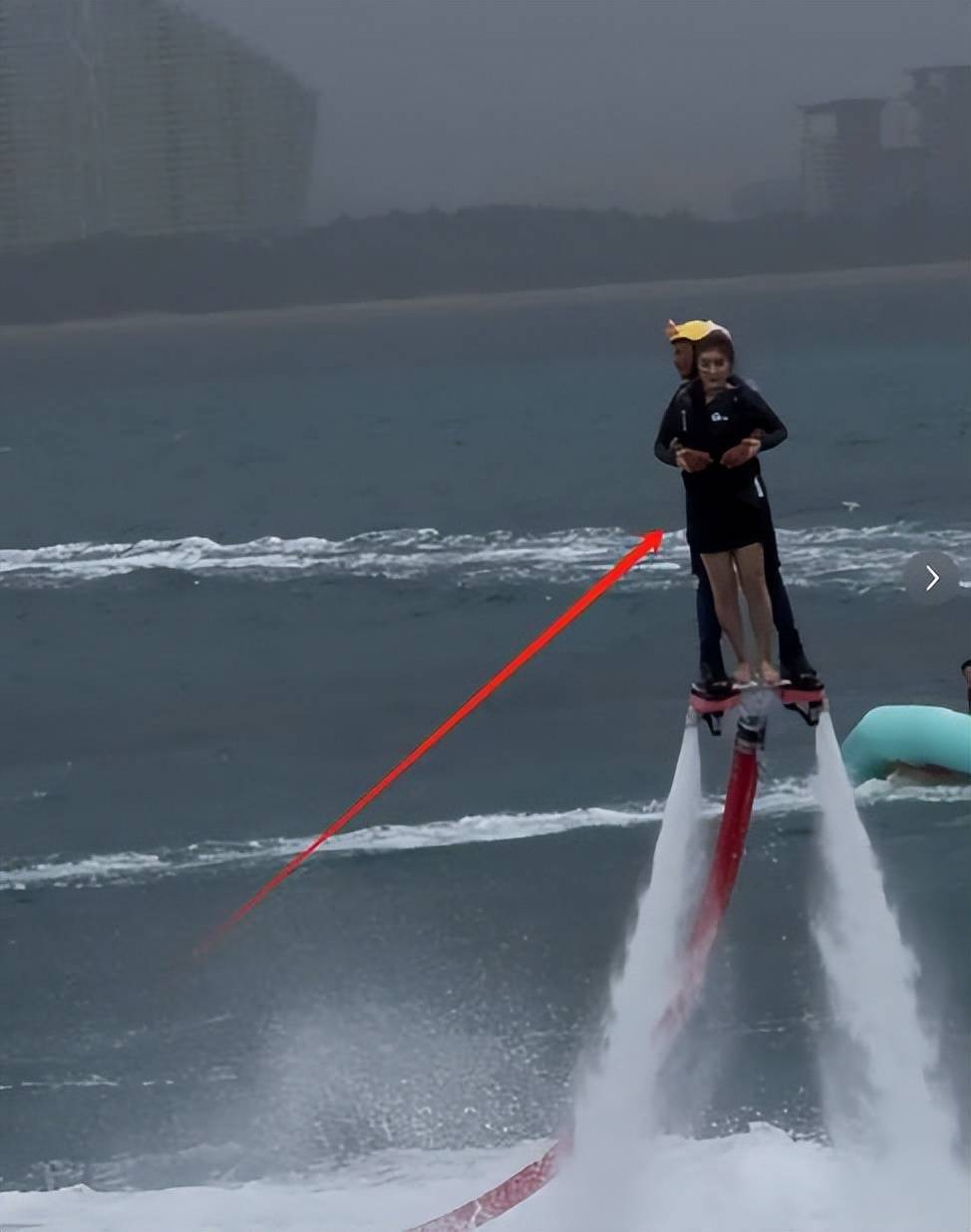 她不仅站姿随和,还双手展开,肉眼可眼力欢快,其实是因为她频繁带着俩女儿来三亚度假,想必这些水上项目,她早就体验个遍了。