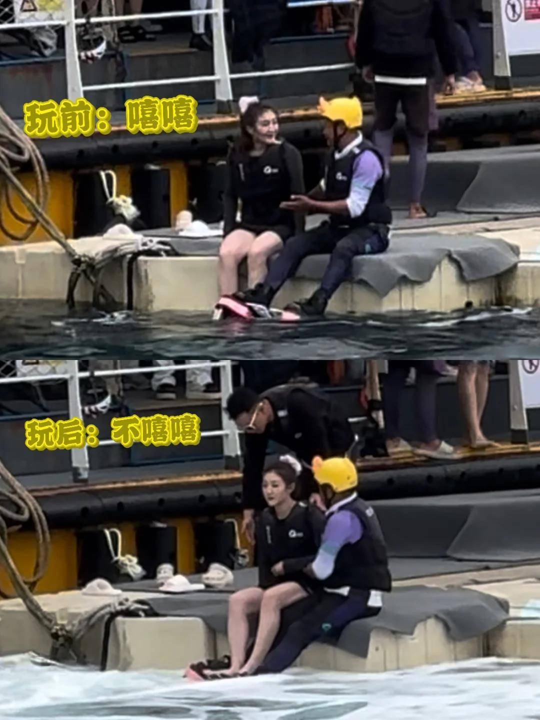 不外别看这会儿俩东谈主都挺欢快的,一到海上玩项目,陈梦就笑不出来了。