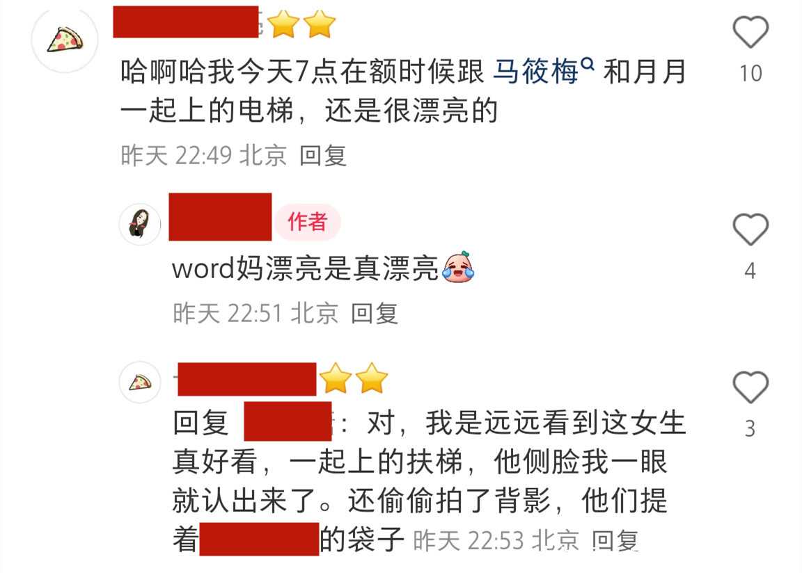 该网友还说她其时看到有东谈主在拍照,她跟着镜头看去,发现一个女的绝顶漂亮,然后她一又友对她说漂亮女子傍边的东谈主是张兰。不难臆测,该网友看到的漂亮女子是马筱梅。