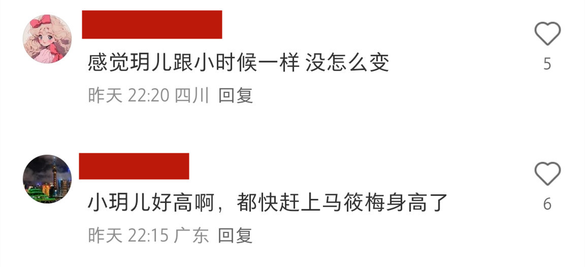 有网友爱慕小玥儿长得真高,还说小箖箖真轩敞。