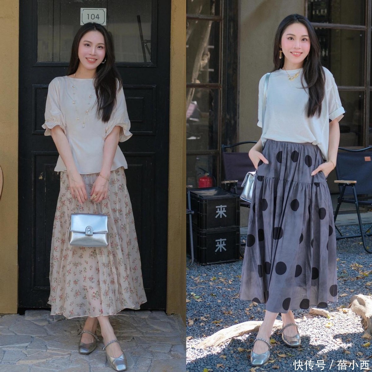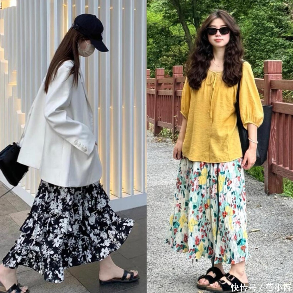 印花阵势的松松半身裙自带纵脱的气质,此时,姐妹们不错搭配一些材质柔嫩的上衣。