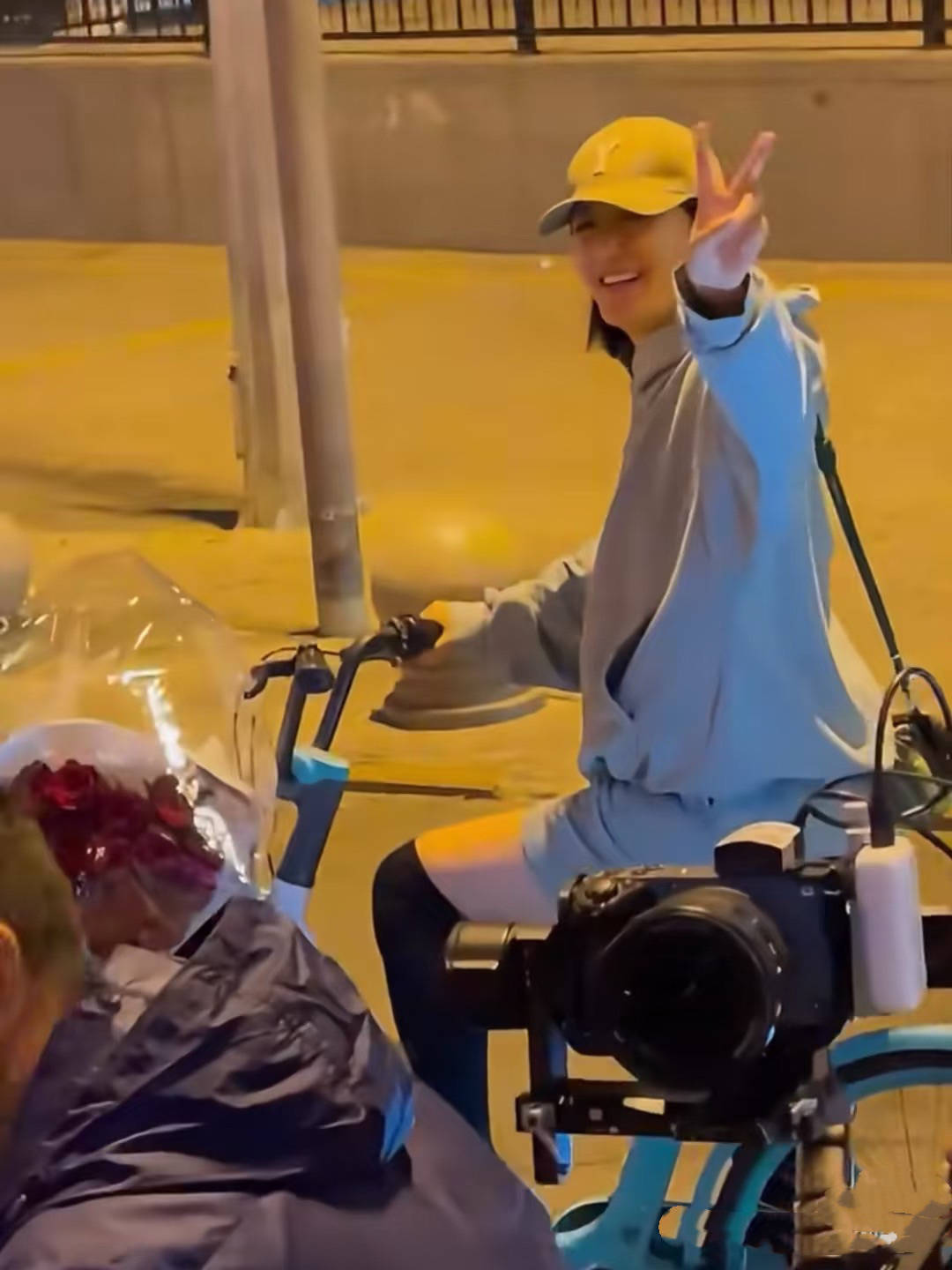 看得出来,谢娜骑行的路上格外振作。她对着镜头比耶,也和路东谈主打呼唤,车筐里的玫瑰花醉东谈主又注目。