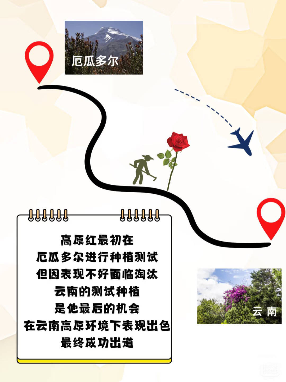 高原红率先在厄瓜多尔进行停止测试,但显露不好濒临淘汰。在云南测试培植契机,高原环境下花开很好意思、花期也更长,是一种不错持久不雅赏的花草。