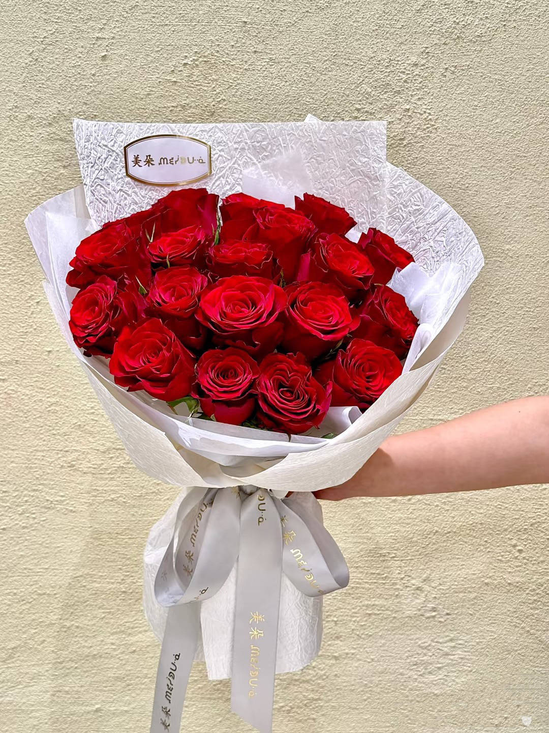 这束红玫瑰,比普通红玫瑰的花朵要大,它是助长在云南高原地区的一种玫瑰花品种,也被称作“高原红”。