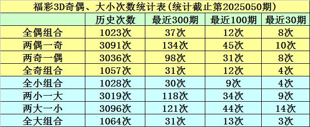 在前10期开奖中,两小一大组合出现4次,两大一小组合出现3次,全大组合出现1次,全小组合出现2次,本期瞻望开出两小一大组合。
