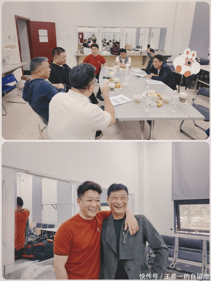 在其中一张像片中不错看到,身穿小西装的王宝强正对着镜头言语,其他剧组演员在他的身旁。