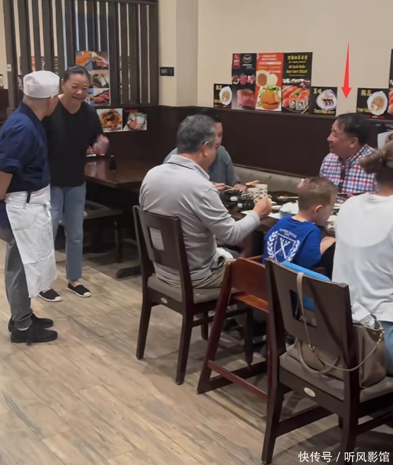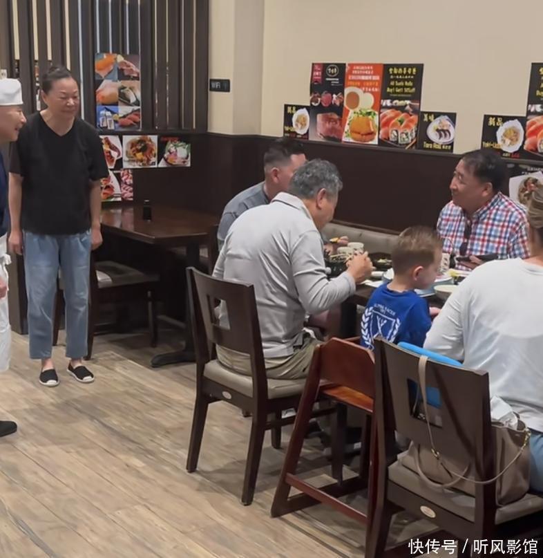 不错看到,姜昆并非我方来吃日料,而是带着家东说念主和一又友,还有一个小男孩坐在姜昆斜对面,坐在姜昆身边的,则是他夫人李静民,衣着印花上衣戴着帽子,两东说念主同框画面很温馨。