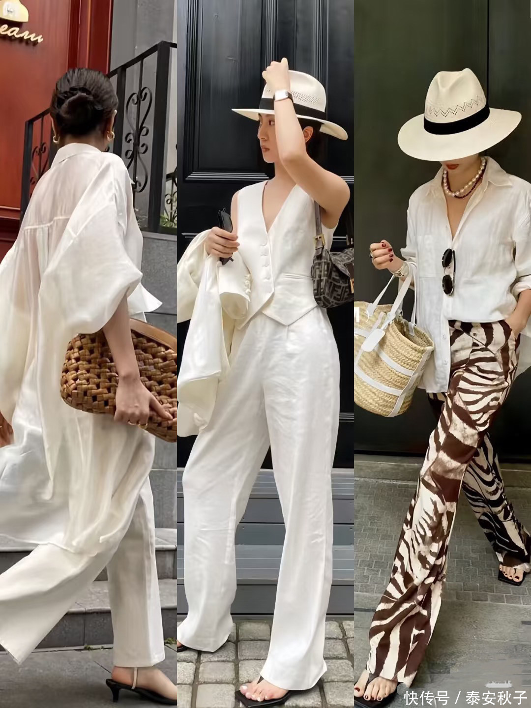用能防晒,又能擢升举座造型高档感的凉帽,搭配碎花裙、或连衣裙,缓慢打造出度假风。