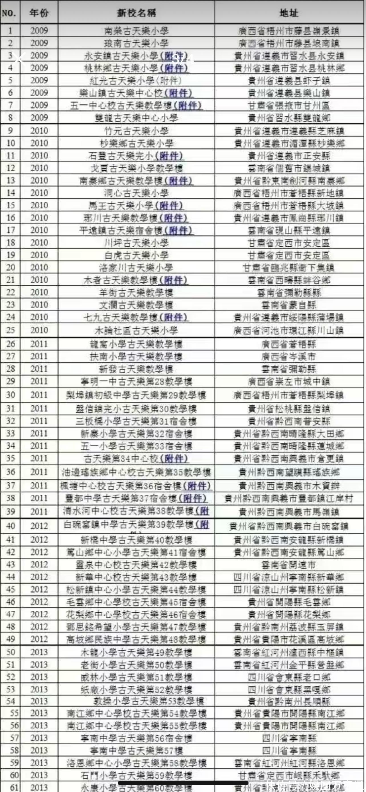 平直把古天乐捐助的上百所小学纪录王人摆了出来,看到一个又一个冠上古天乐名字的小学,