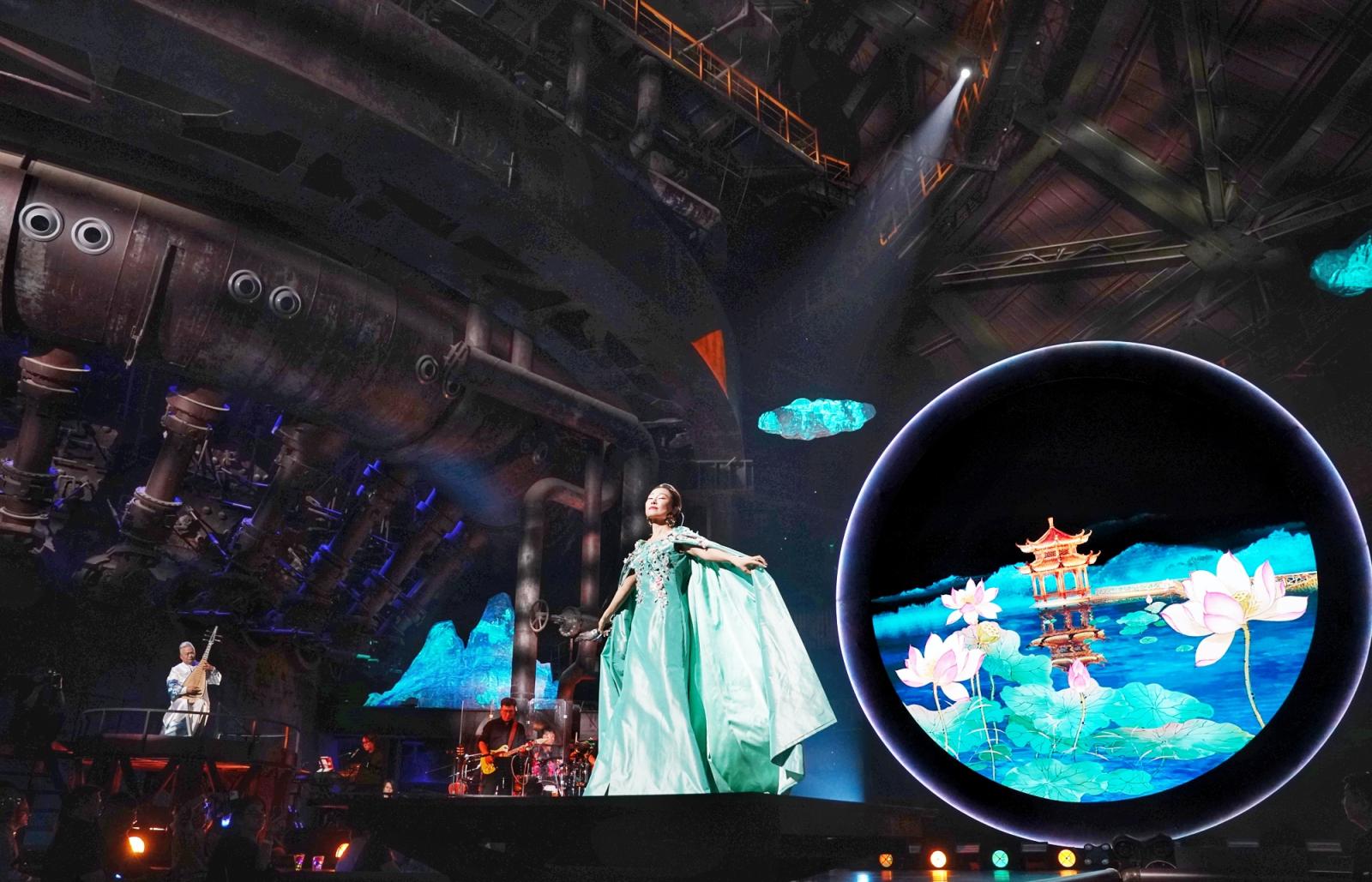 原有的工业齿轮、管谈等元素赫然咫尺,音乐会的主舞台就在高炉内,把钢铁元素浑然自成地如胶如漆。舞台上,常念念念念的声息时而花腔,时而流行,曲目打算上也特殊斗胆,既有《春天的芭蕾》《玛依拉变奏曲》《汉服青史》等常念念念念的经典声乐代表作,也有选自音乐剧《剧院魅影》的高难度作品。此外,改编版的《千年等一趟》、立场灵动俏皮又兼具超高花腔的《广寒宫》,也在她的演绎下让不雅众咫尺一亮。