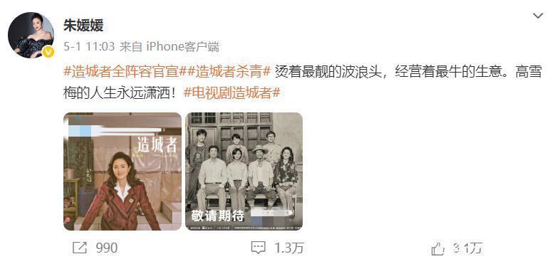翻看朱媛媛的嘱托账号可知,5月1日,她还在网上为我方的新剧《造城者》作念宣传。