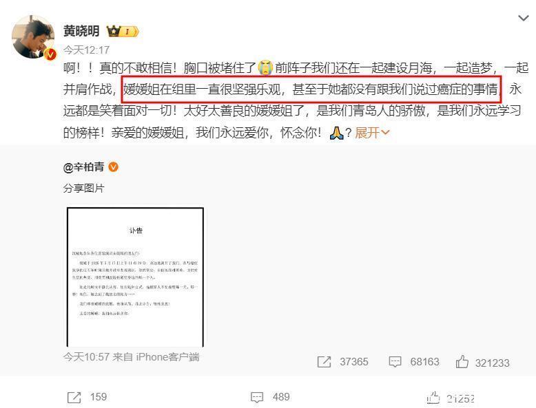 现在,朱媛媛的丈夫辛柏青还是发布了讣告。