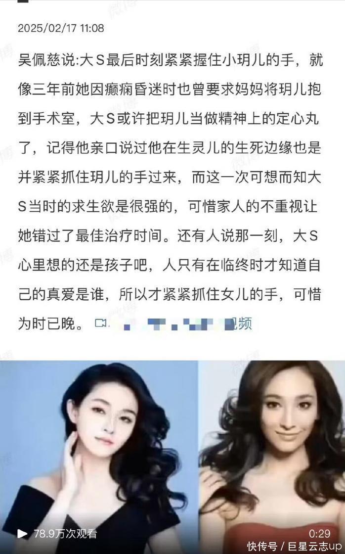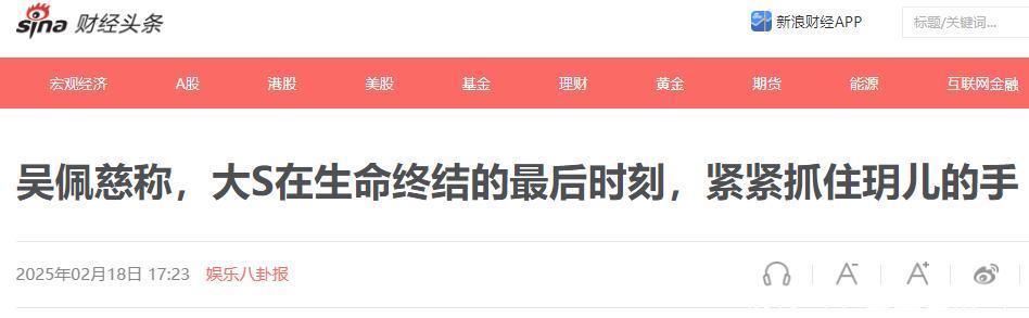 【1】2025年02月18日文娱八卦报《吴佩慈称,大S在人命终结的终末时刻,牢牢收拢玥儿的手》