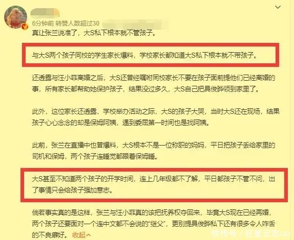 不事自后汪徐两家的拉锯战给这件事带来了回转,一些网友又缓缓开动认为,说“大S不是好姆妈”的言论是徐家的缺欠。