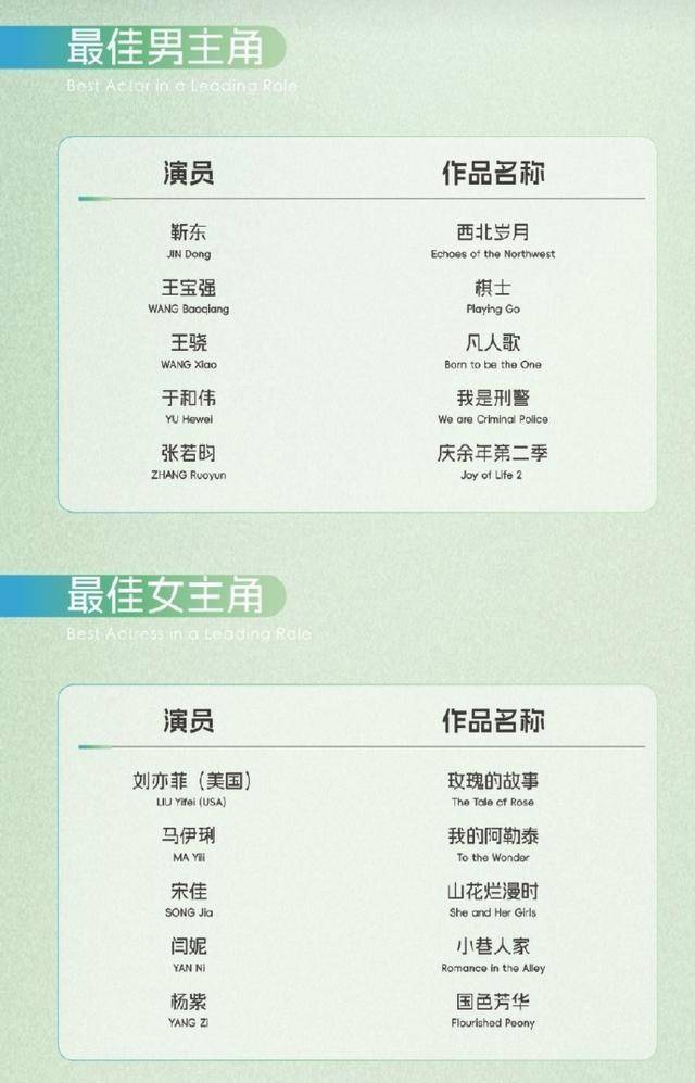 最受瞩方针莫过于入围的5位女演员,旧年粗略本年有热剧傍身的盛名演员皆在列。这一届竞争确凿相配利害,刘亦菲凭借《玫瑰的故事》黄亦玫入围,马伊琍凭借《我的阿勒泰》张凤侠入围,闫妮凭借《胡衕东谈主家》黄玲入围,杨紫凭借《国色青春》何惟芳入围,宋佳凭借《山花烂漫时》张桂梅入围。