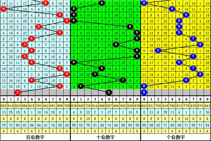 百位推选:百位最近20期号码012路比为7:6:7,现在0路号码遗漏2期,1路号码遗漏1期,2路号码遗漏0期,另外0-9号码遗漏期数分辩为: