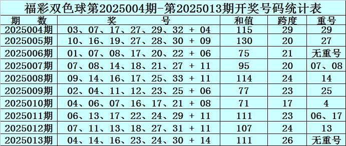 双色球第2025013期奖号开出:04、14、16、23、24、30 + 14,红球号码和值开出111,跨度开出26,开出重号0个:无重号。蓝球为2路号码。