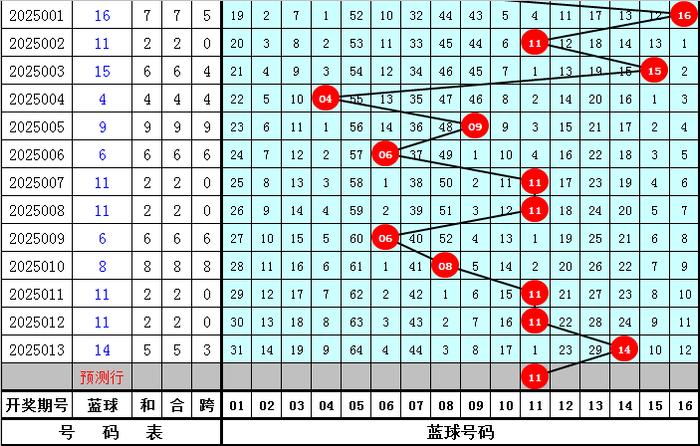 蓝球分析:上期开出蓝球号码14,号码遗漏值为0,温热蓝球号码近期推崇活跃,本期瞻望蓝球再出温热号码,参考蓝球号码11。
