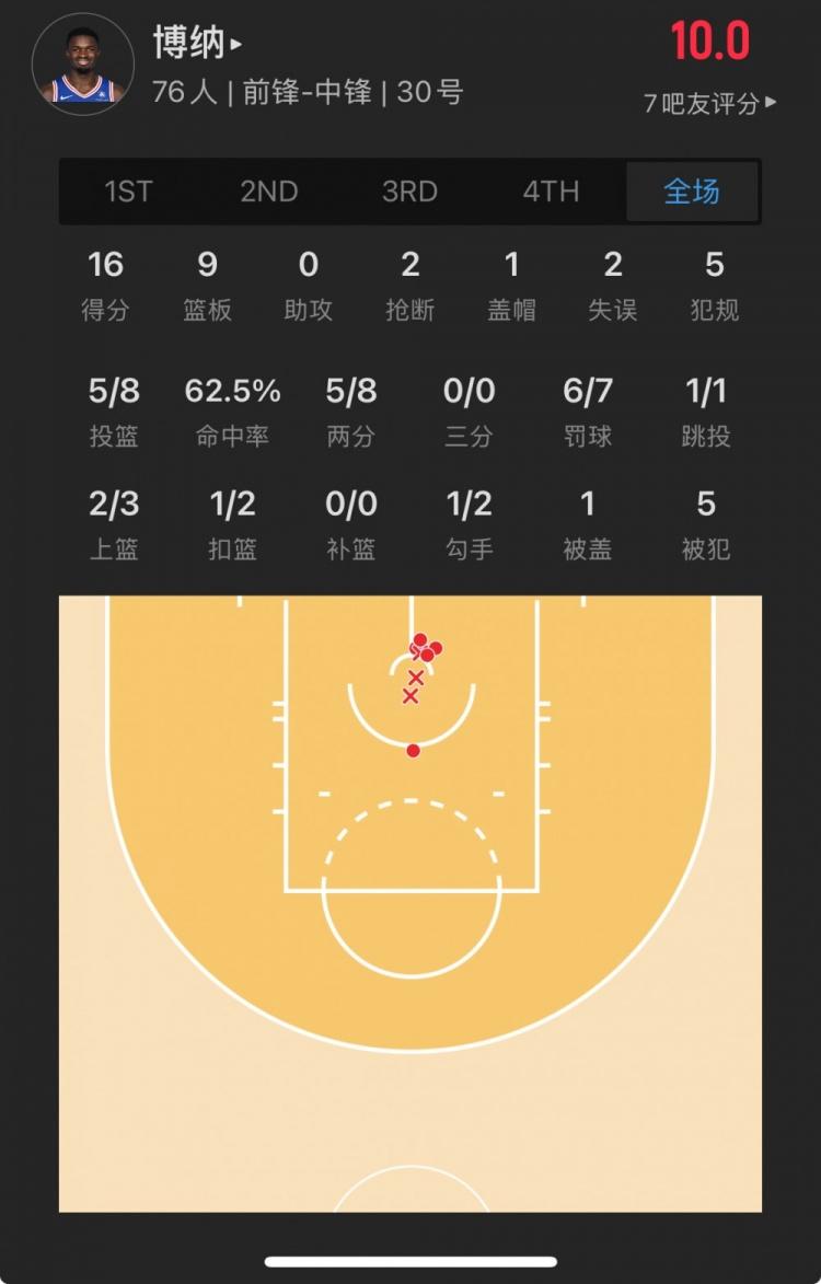 76东说念主41号秀 阿德姆-博纳 登场33.6分钟