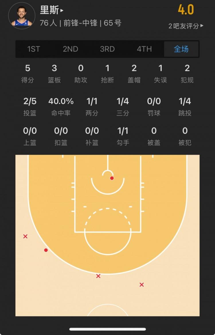 76东说念主落第秀 亚历克斯-里斯 登场18.5分钟