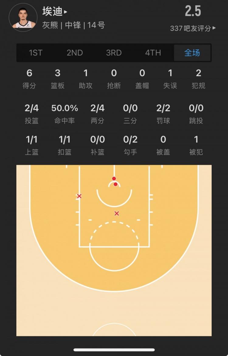 灰熊9号秀 扎克-埃迪 登场10.8分钟