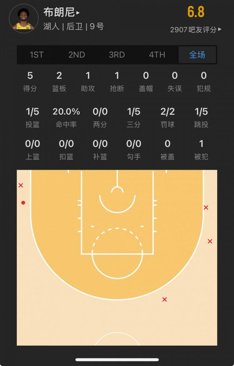 湖东说念主55号秀 布朗尼-詹姆斯 登场15.7分钟