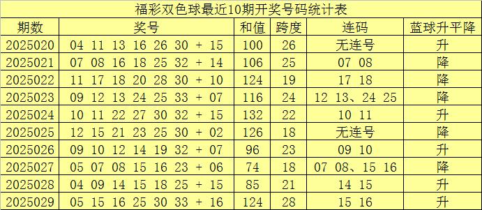 福彩双色球第2025029奖号开出:05 15 16 25 30 33 + 16,红球号码和值为124,首尾间距为28,包含连号:15 16。