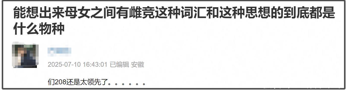 其实马伊琍这段话的重心即是爱东谈主先爱己,然则不知为何会那么突兀的暗示母女之间有雌竞身分,一般东谈主很难思到用这个词汇,毕竟莫得东谈主会跟我方亲男儿雌竞啊!因此不少网友揣度马伊琍是不是发生什么了,才会当然地说出这句话。