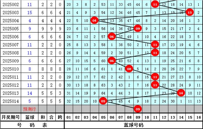 蓝球分析:上期蓝球奖号开出05,为小 号,上周四蓝球奖号开出11,最近十周四蓝球号码大小比为8:2,大号蓝球显著较热,本周四注宏大号蓝球连接开出,参考蓝球号码09、10、13、14、15。